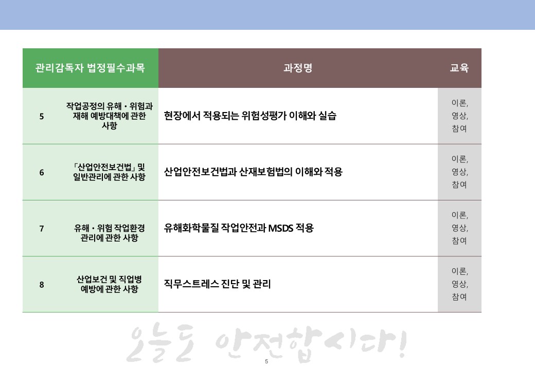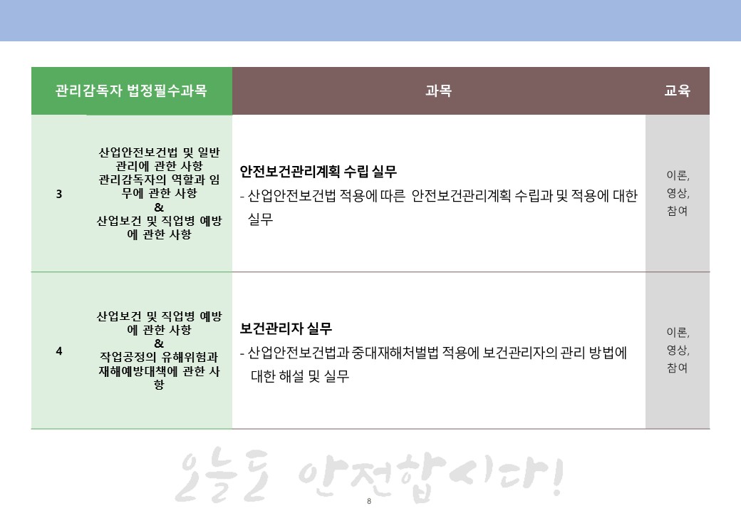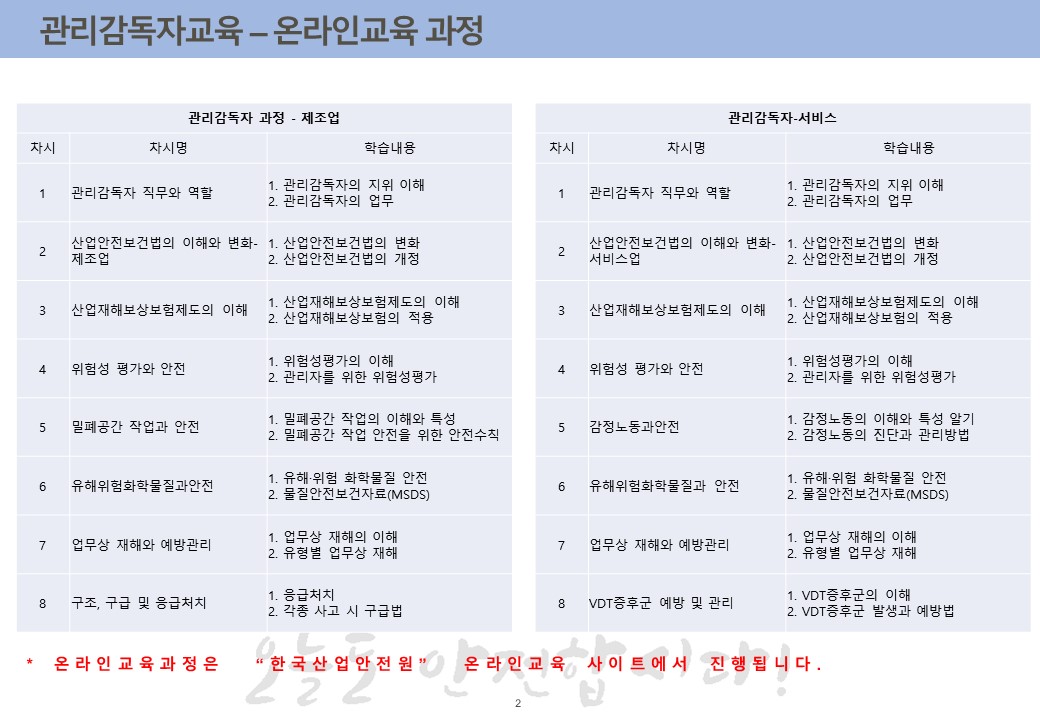 21년 관리감독자교육은 온라인과 집합교육 모두 선택을 하실 수 있도록 했습니다.